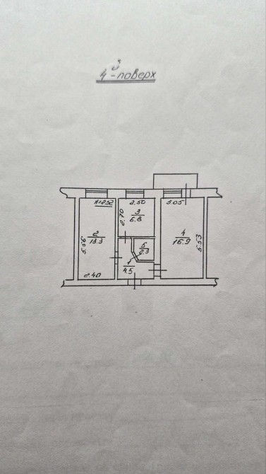 Площа — 44 м² (кімнати окремі)