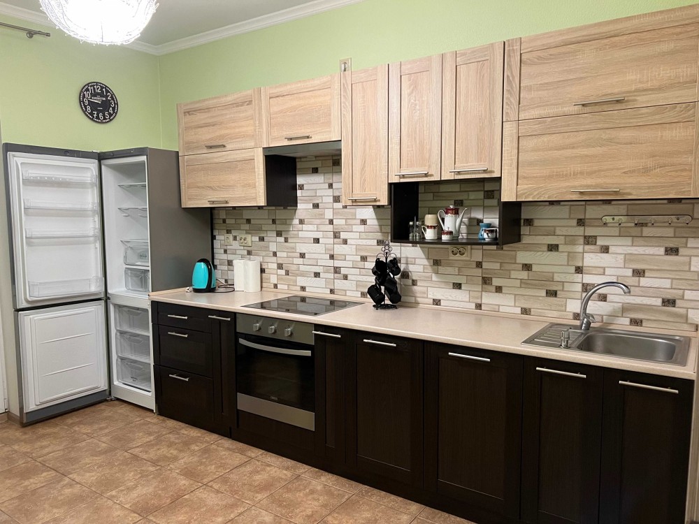 Новий будинок 2010 року, поверх 12\16ти, загальна площа 90м2, дві окремі кімнати, вбудована кухня, двоспальне ліжко, двоспальний диван, шафи, вбудована кухня, є вся необхідна техніка та меблі.