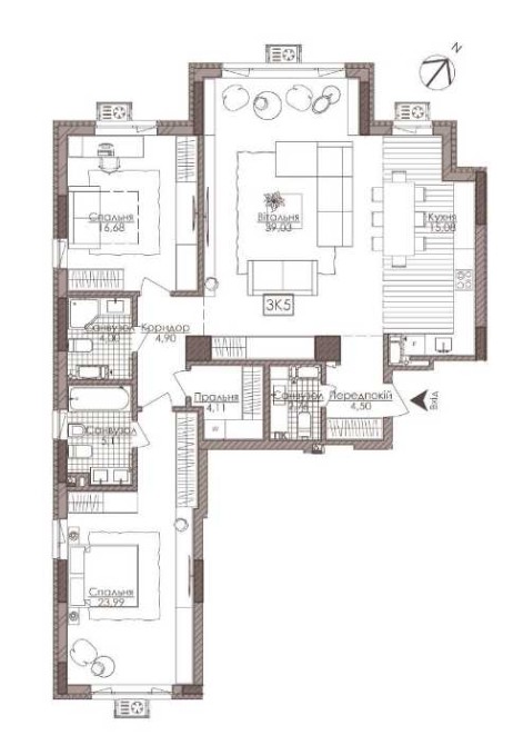 ТРИ кімнати - 39.6кв.м., 16.9кв.м., 28.6кв.м.