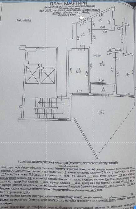 Пропонується до продажу затишна 3-кімнатна квартира . Загальною площею 94.5 кв.м, розташована в зручному районі з легким доступом до центру міста.