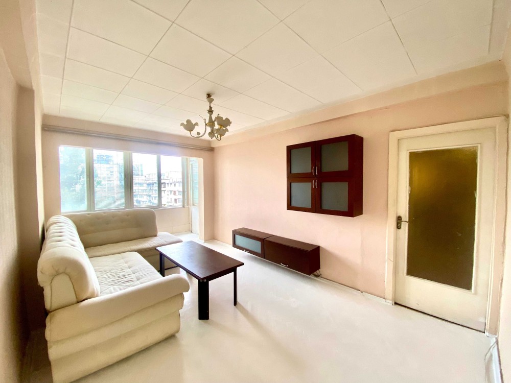 У першій кімнаті на вас чекає великий м’який диван, журнальний столик і вдосталь місць для зберігання речей — усе створено для якісного відпочинку після робочого дня.