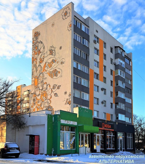 На дві сторони, більшість кімнат виходять в двір, в квартирі тихо. Квартира має засклений м/п вікнами балкон площею 3.2м2 та лоджію 3м2. Броньовані вхідні металеві двері.