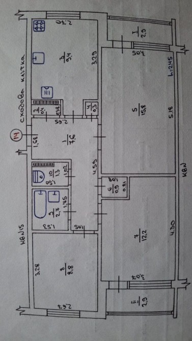 • Площадь кухни 9.4 м2