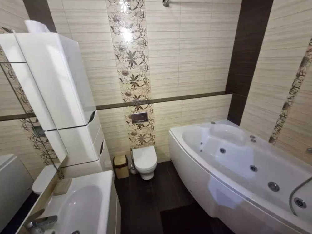 Просторная, двухсторонняя квартира, общая площадь 88 кв.м .Все комнаты раздельные: гостиная с камином, спальня с выходом на лоджию, детская комната, два санузла, джакузи. Остается вся мебель и бытовая техника, есть стабилизатор напряжения, счетчик на отопление.