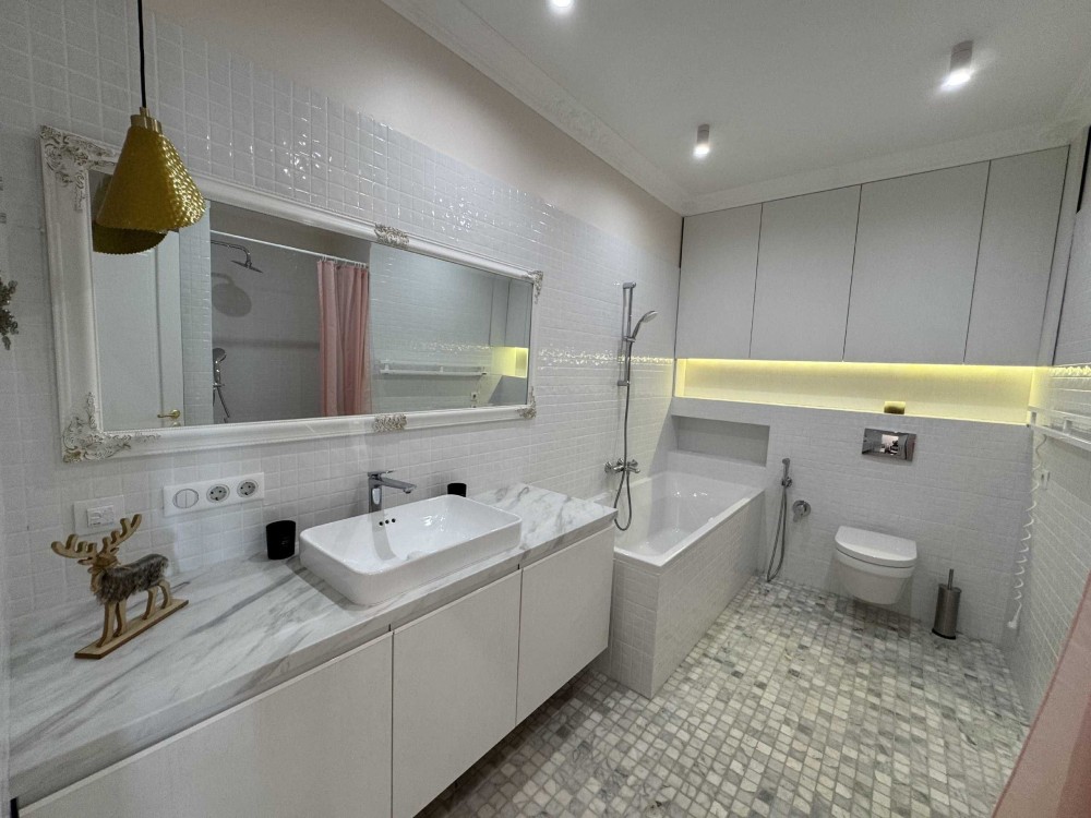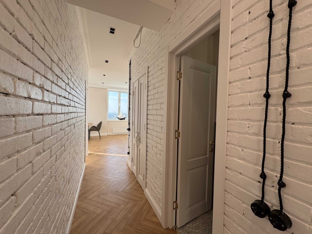 В квартире выполнен дизайнерский ремонт, в котором использовались дорогие качественные стройматериалы и мебель: сантехника villeroyboch, смесители grohe, техника bosh. Каждая деталь интерьера продумана до мелочей, а великолепный вид со всех окон.