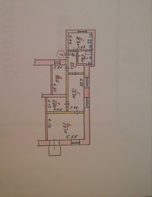 Загальна площа - 71,2 м.кв., включає 3 кімн. (23,1 м.кв.+6,6 м.кв. + 10,0 м.кв.)+ підвал, є власна кухня – 8,9 м.кв., сумісний санвузол, автономне опалення, лічильники на все. Висота стелі - 3м.