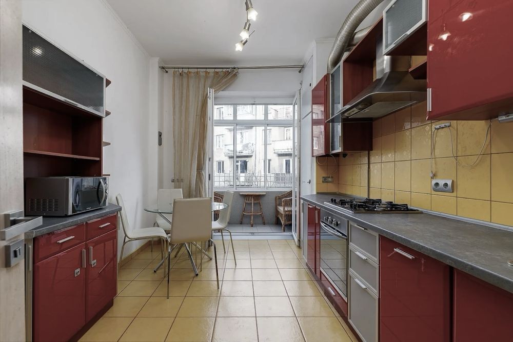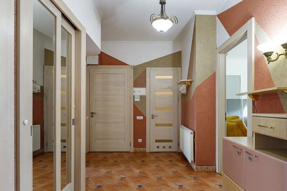Люксове планування. Квартира двостороння, кімнати ізольовані, правильної форми, велика світла кухня з панорамним вікном у великий світлий двір, роздільний санвузол. Індивідуальне опалення, 2-х функційний котел, деревʼяні міжкімнатні двері, МПВ, євроремонт, вся побутова техніка та меблі, дві спальні з двоспальними ліжками, сигналізація, фасадний балкон та лоджія у внутрішній двір,гарний підїзд, лише одні сусіди на поверсі, зручне розташування, до центру 7 хв.пішки