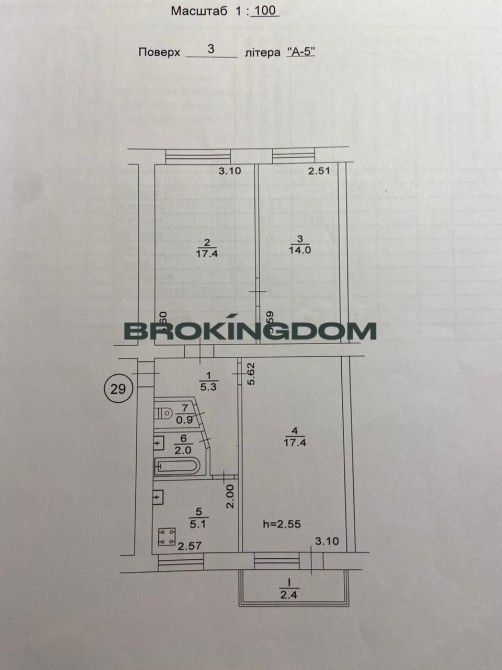 Поверх: 3 із 5 | Загальна площа: 65 м² | Матеріал будинку: цегляний
