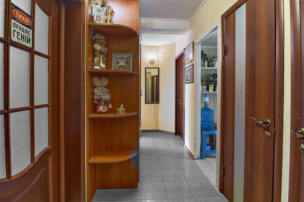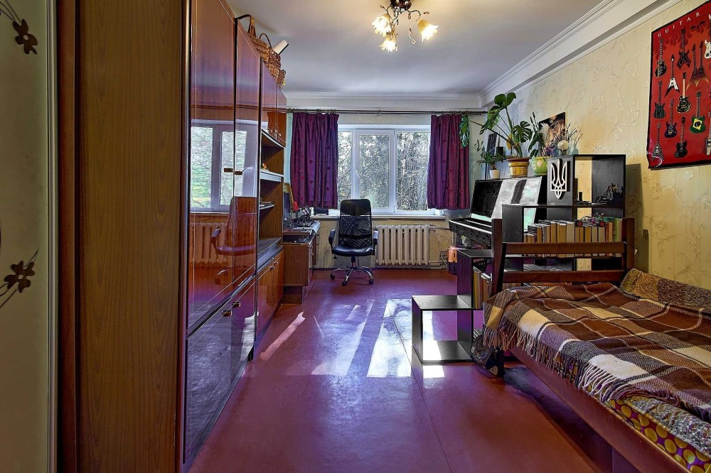 Розташована на п'ятому поверсі 5-поверхового цегляного будинку. Не торцева, з комфортним плануванням. Загальна площа 62,2 кв.м. Кімнати приблизно однакові за розміром (15 кв.м.), кухня 8,1 кв.м. Досить просторий коридор.