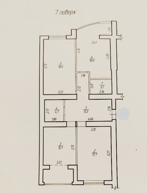 Раціональне планування: кухня-вітальня, три окремих кімнати, роздільний санвузол. Квартира на 7-му поверсі, має приємний вигляд у внутрішній двір.