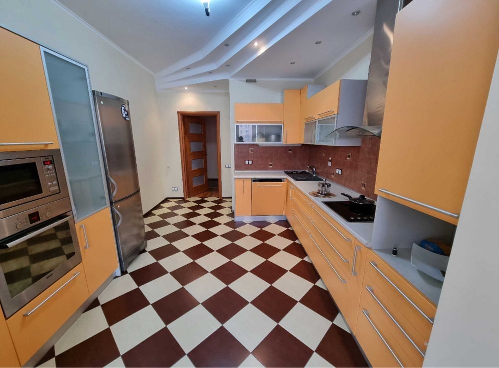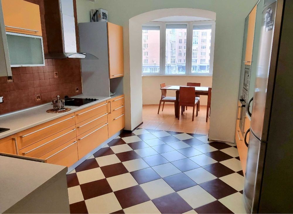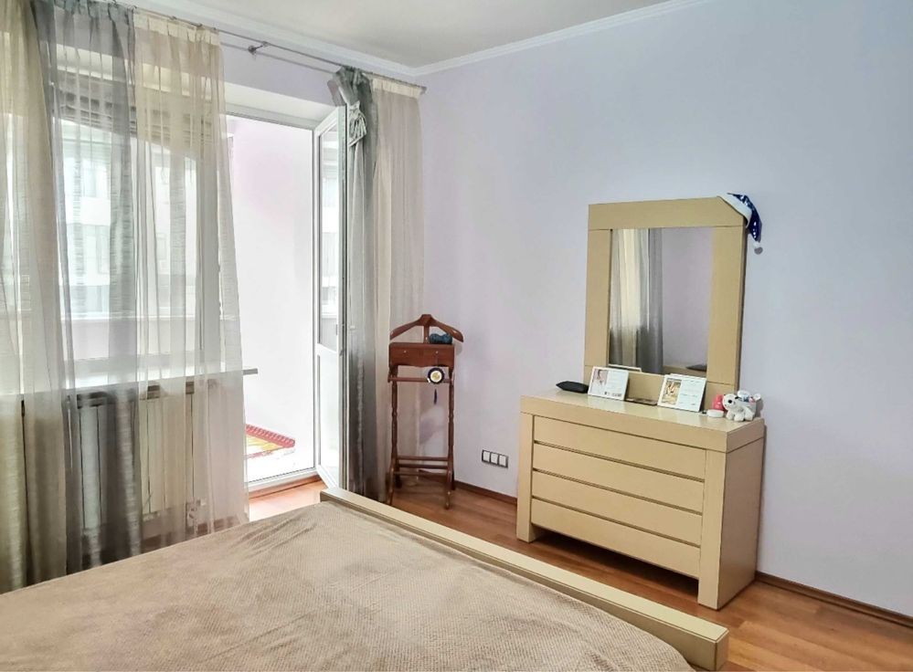 Три окремі кімнати, кухня 15 м², два санвузли. Якісний ремонт, квартира повністю укомплектована меблями та технікою відомих брендів.