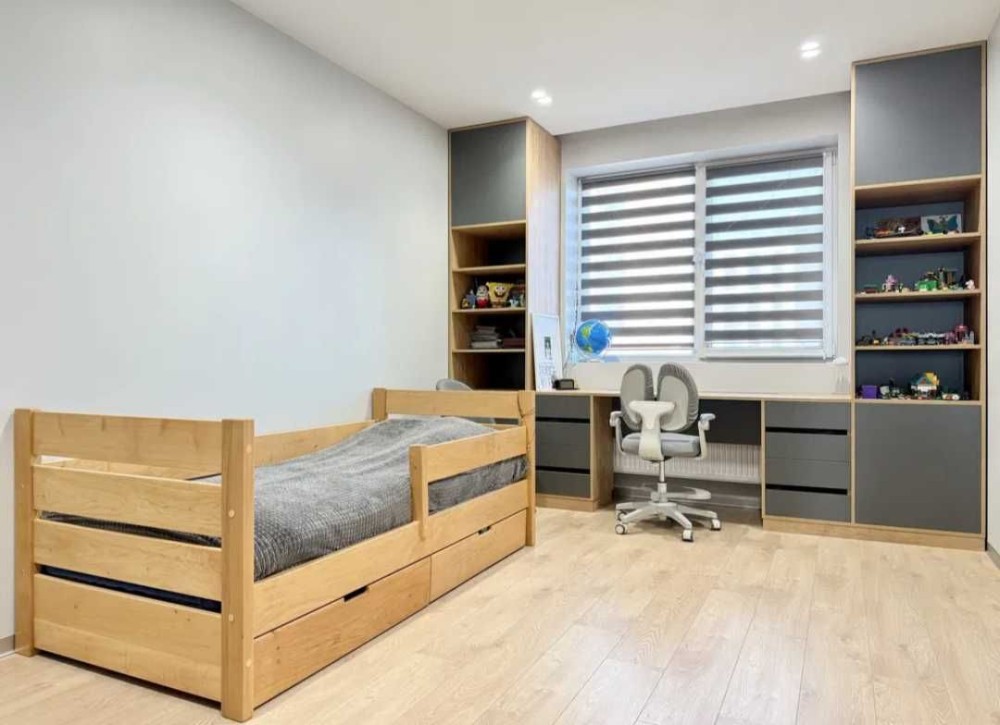 Велика вітальня з лоджією, підсвіткою стелі, трековим освітленням, кондиціонером, мебльована спальня, дитяча кімната, велика шафа-гардеробна в коридорі.