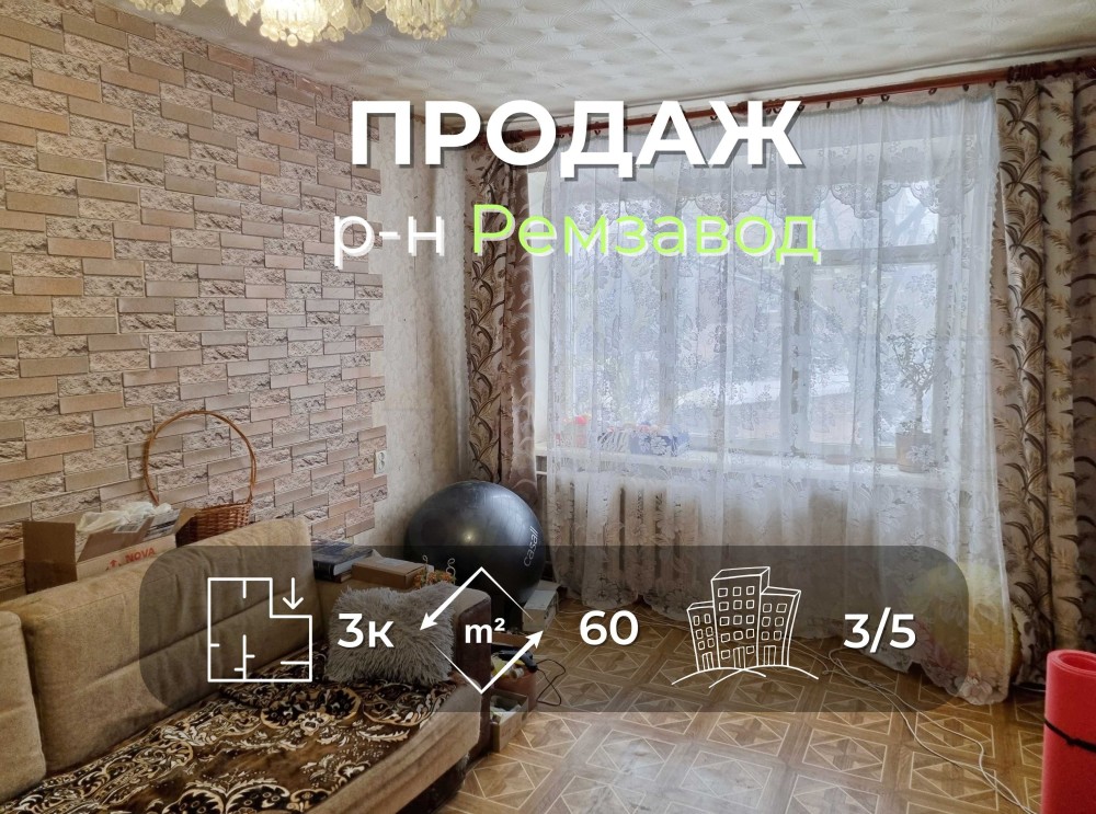 3 кімнатна квартира 60м2, 3/5 в районі Ремзавод