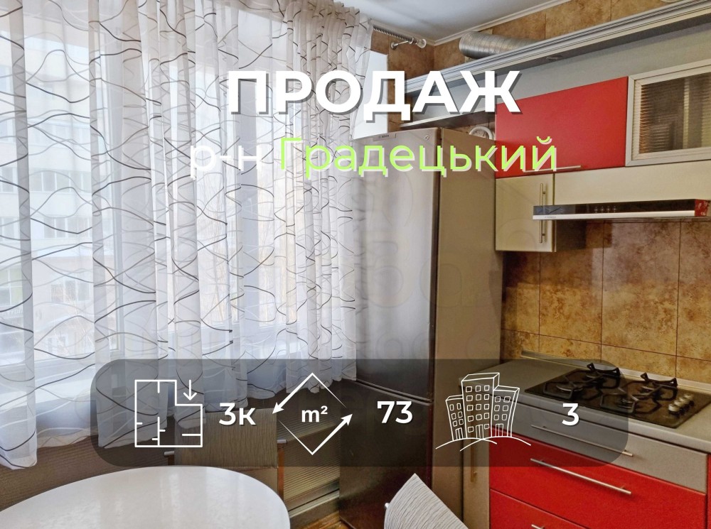 3 кімнатна квартира 73м2 з ремонтом, 3 поверх район Градецький