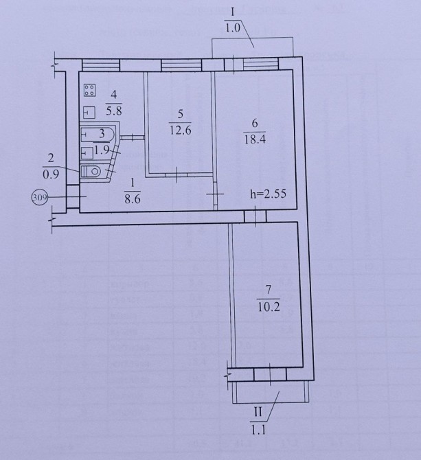 Квартира розташована в середині будинку та на середньому поверсі, 2 балкони.