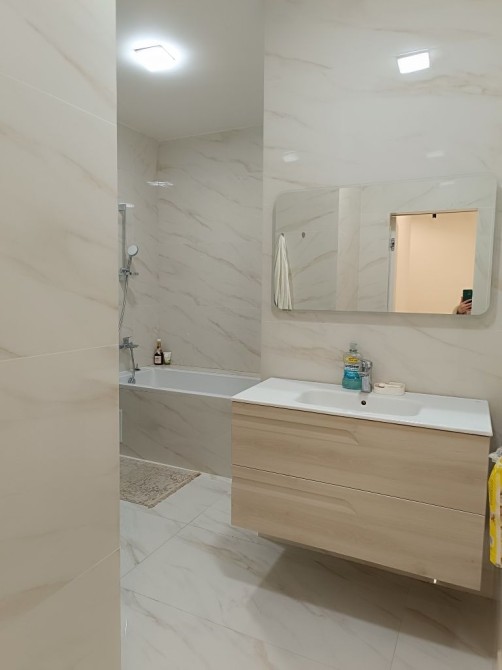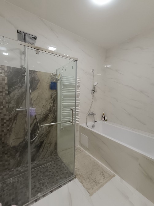 Кухня студія + дві окремі кімнати. Великий санвузол з ванною і душовою кабіною. Підігрів підлоги.