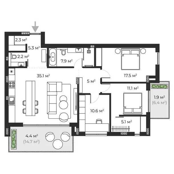 35.1 м2