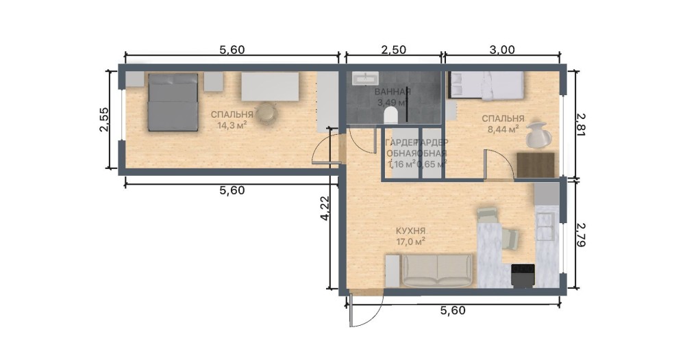 • Общая площадь 45 м2