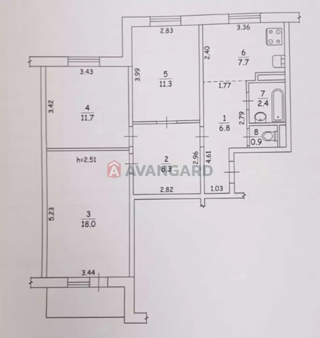 •Кімнати: 18 м², 11,7 м², 11,3 м²