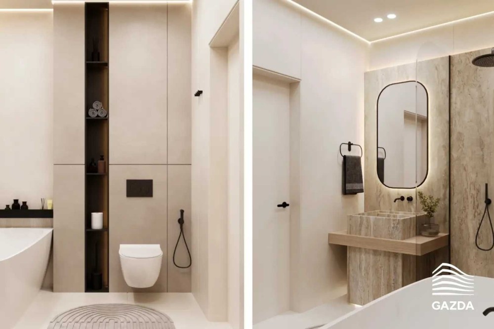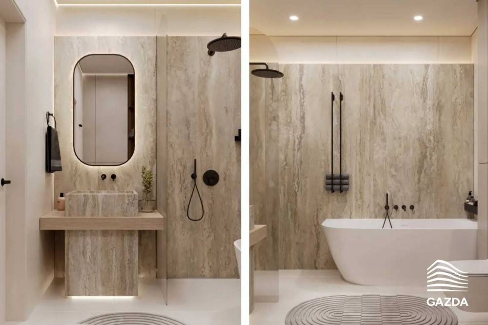 • Ванна кімната з декоративними вставками з італійського керамограніту (плитка 2,8 м)
