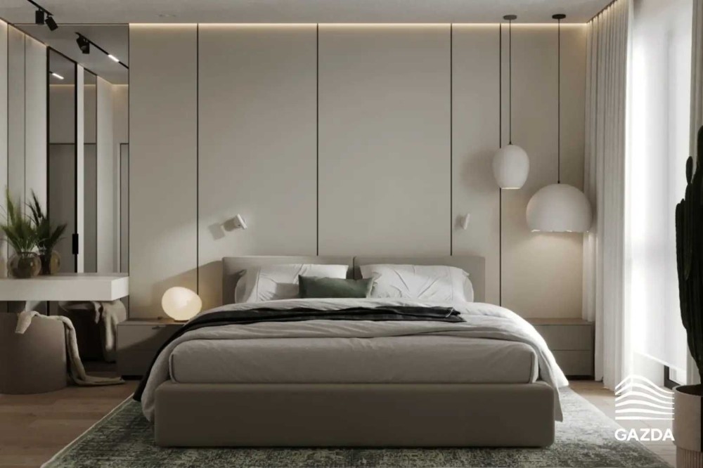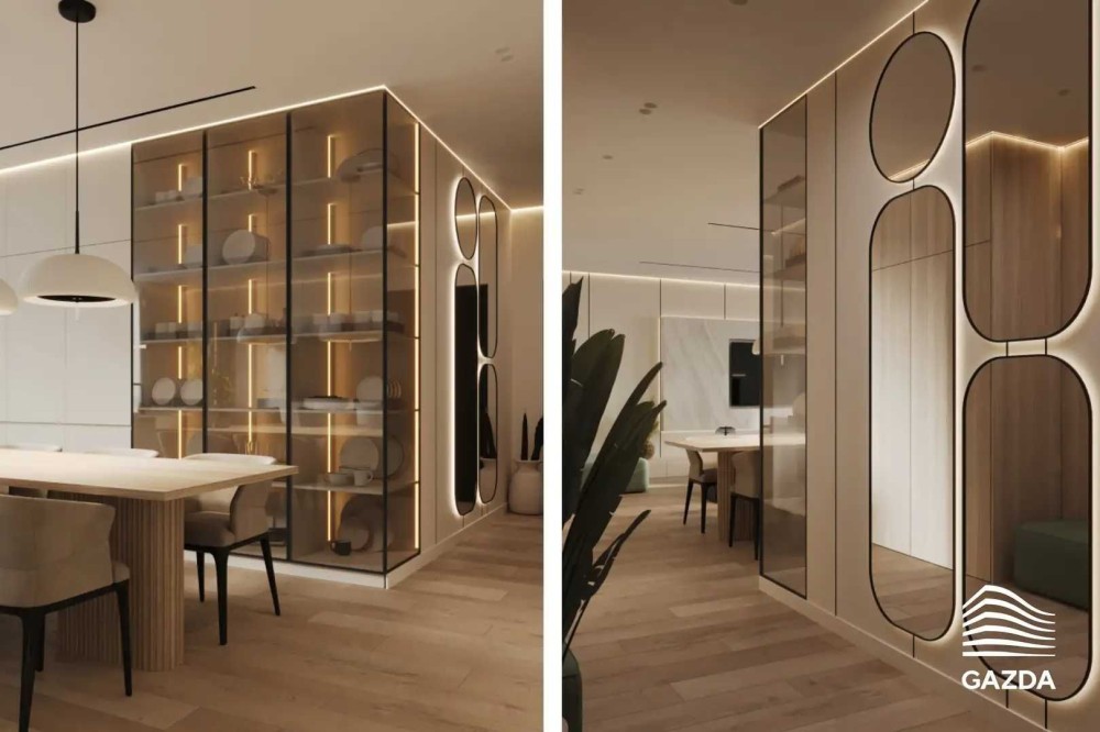 • Скляні розсувні двері між вітальнею та спальнею