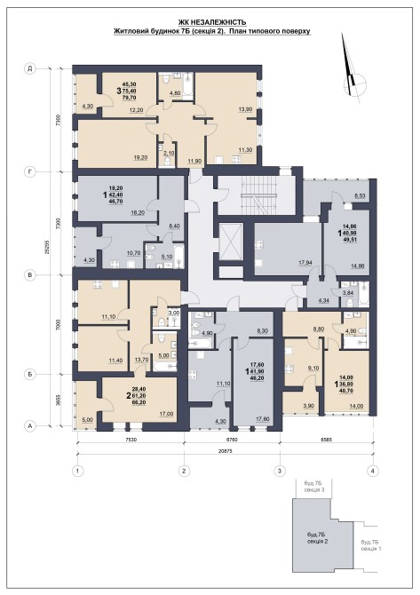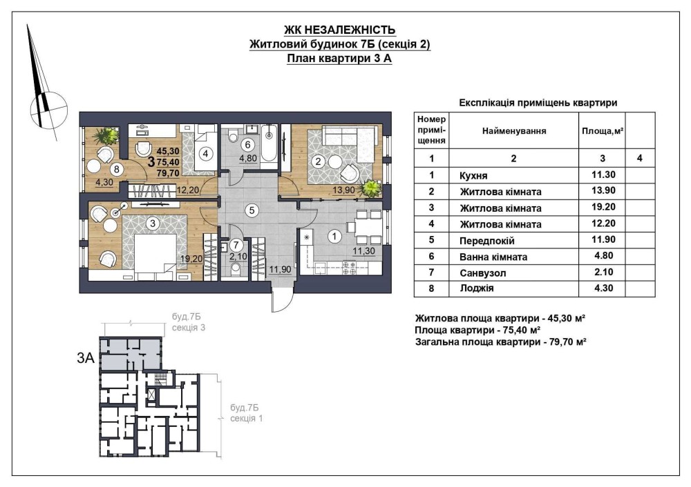Простора трьохкімнатна квартира 79,7 квм проектною площею. Секція готується до здачі у жовтні. 4 під'їзда уже здано, поруч секції заселені.