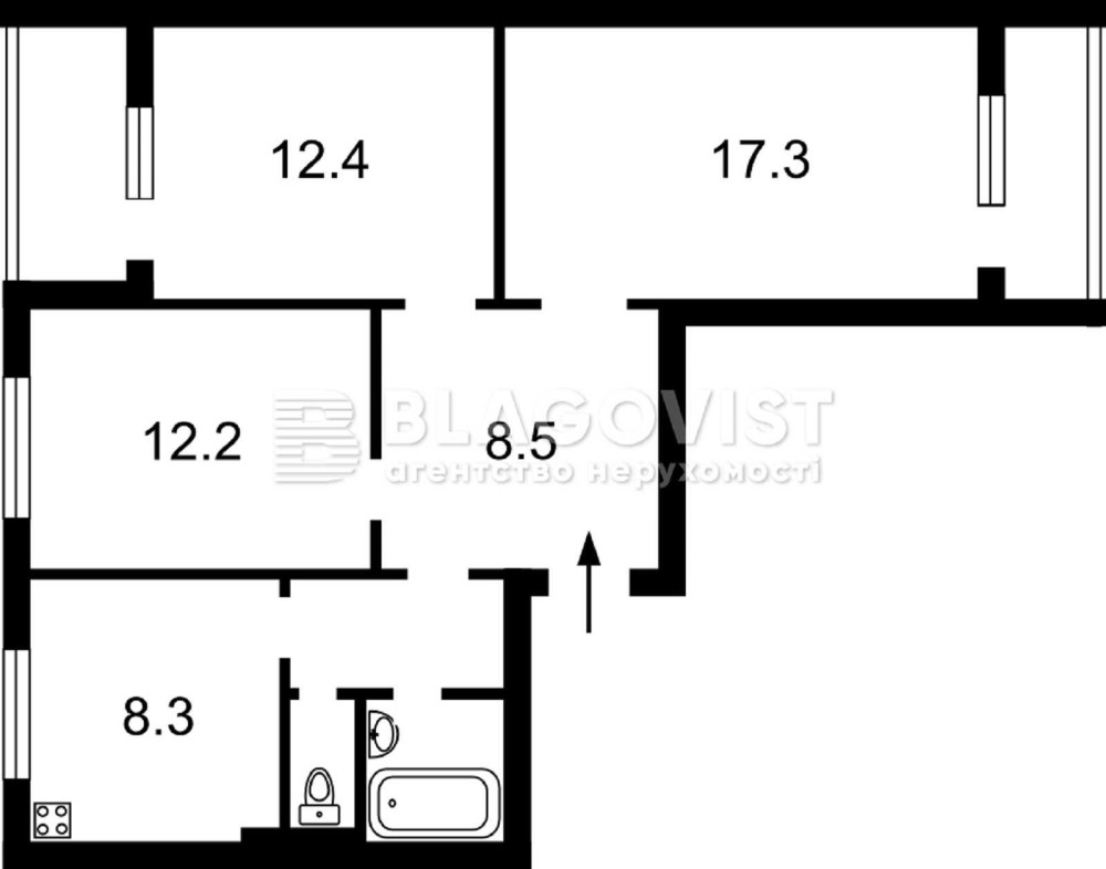 3-кімнатна Милославська, 3, 72.3 м2 Троєщина