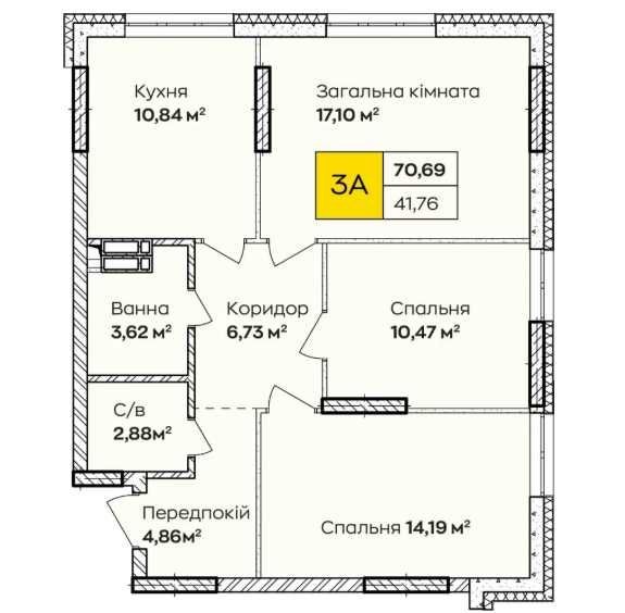 • Общая площадь 70.69 м2