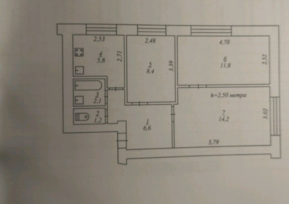 • Площадь кухни 6 м2