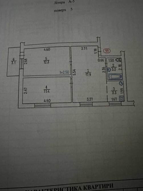 • Площадь кухни 3.3 м2