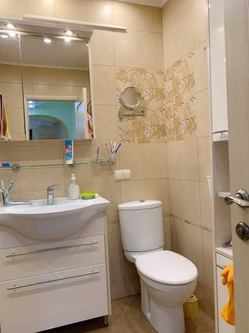 Просторная кухня и обеденная зона 16 м2, 2 светлые раздельные спальни, отдельная комната гостиная, есть балкон, 2 санузла (гостевой и хозяйственный). Вся техника и мебель остается по договоренности.