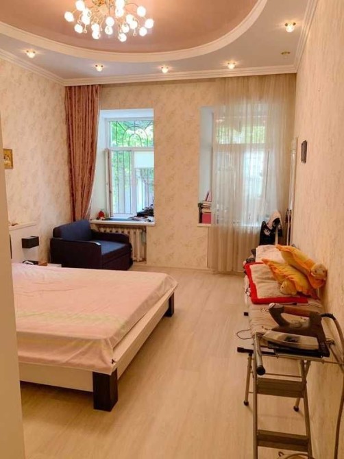 Двухуровневая трехкомнатная квартира в центре Одессы, пер. Чайковского. Очень светлая и просторная. Высокий первый этаж. Тихое уютное место в чистом Одесском дворике, отдельный вход со своим палисадником, где можно устроить летнюю площадку, оставлять велосипеды, коляски. Есть вход из парадной, а также есть отдельное место для машины.
