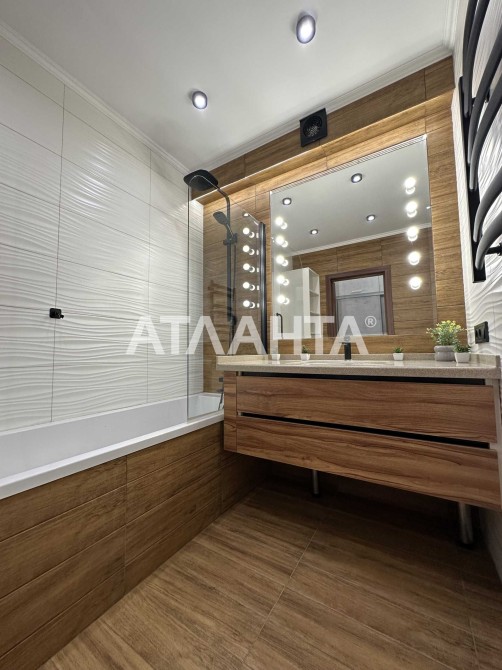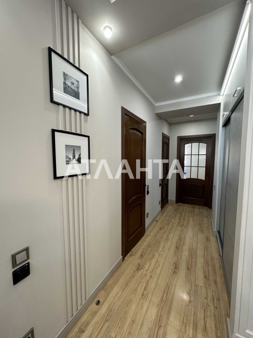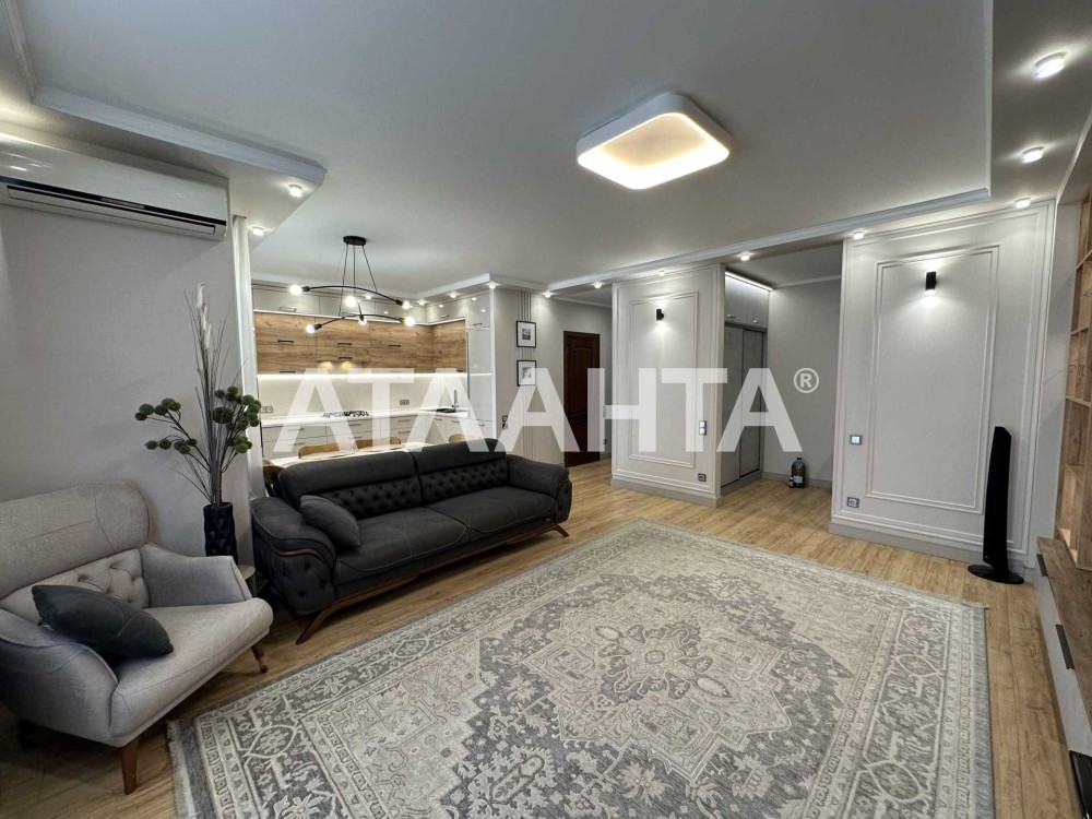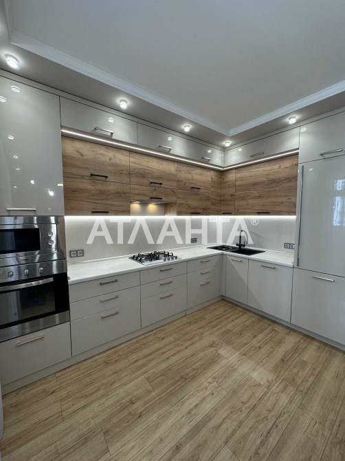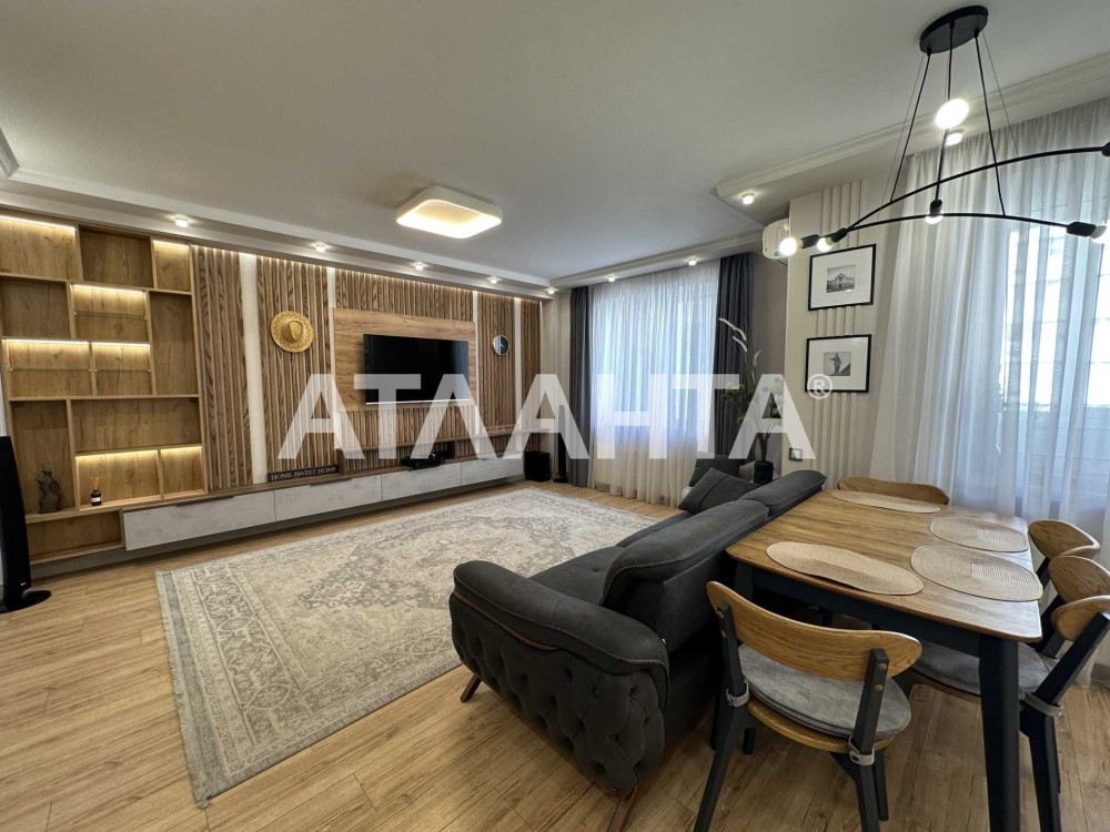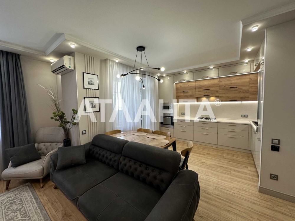 Планировка продумана до мелочей: просторная кухня-гостиная, две раздельные комнаты, большая гардеробная, два санузла — один с ванной, другой с душевой кабиной. Выполнен качественный евроремонт в современном стиле, установлен тёплый пол, система охраны и видеонаблюдения, на окнах в спальне — роллеты с управлением. В каждой комнате кондиционер. Газовая плита.