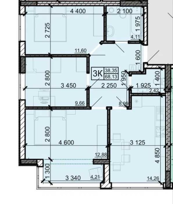 • Общая площадь 68 м2