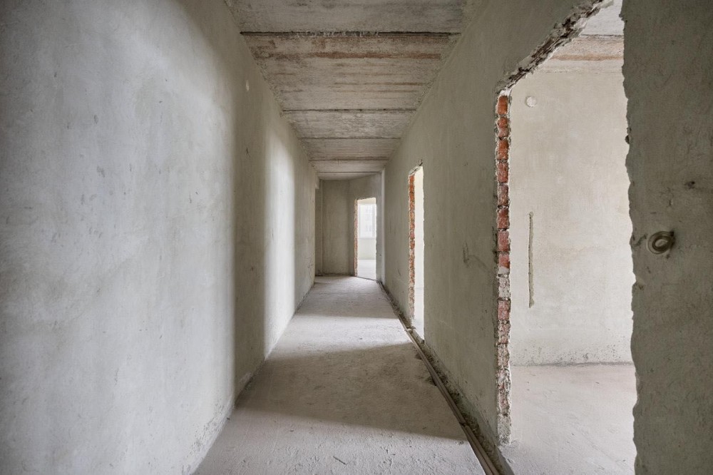 Квартира в 0-циклі, тобто ще без ремонту.