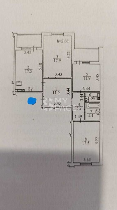 • Площадь кухни 17.5 м2