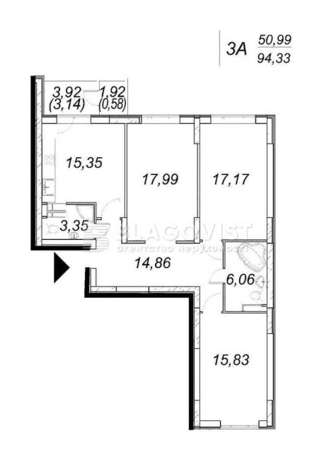 • Общая площадь 94 м2