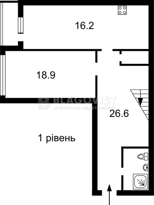 53 кв.м -загальна/ 17 кв.м -житлова/ 17 кв.м- кухня-вітальня