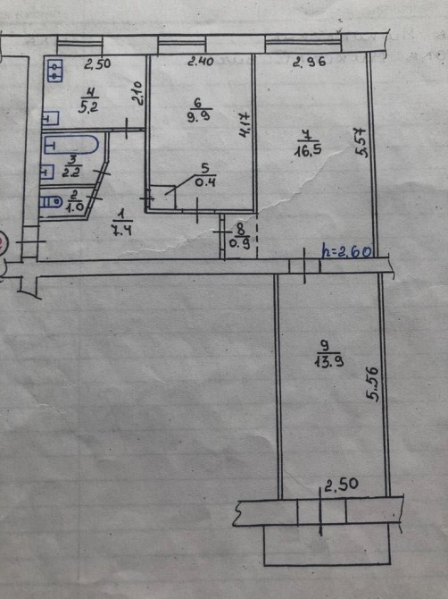 Квартира без ремонту, але в хорошому стані, суха, не кутова. Висота стін 2,6м., простора, зручне планування.