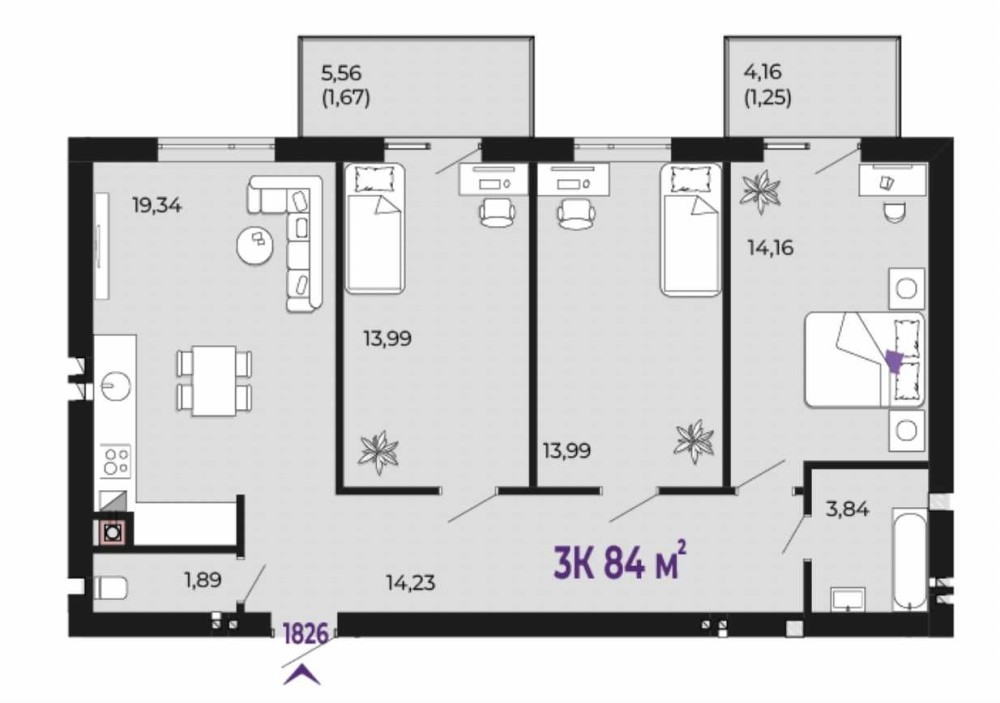 • Общая площадь 84 м2