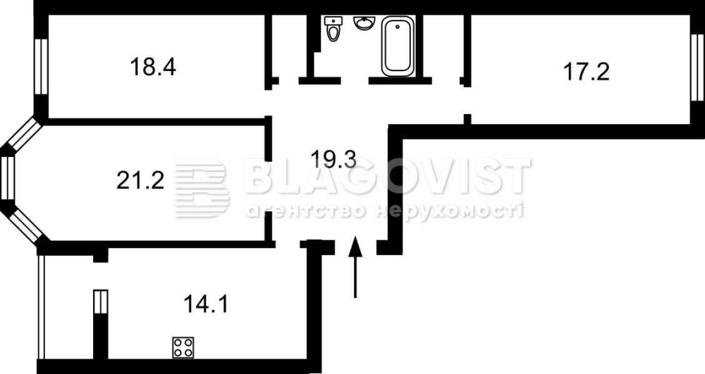 • Площадь кухни 14.1 м2