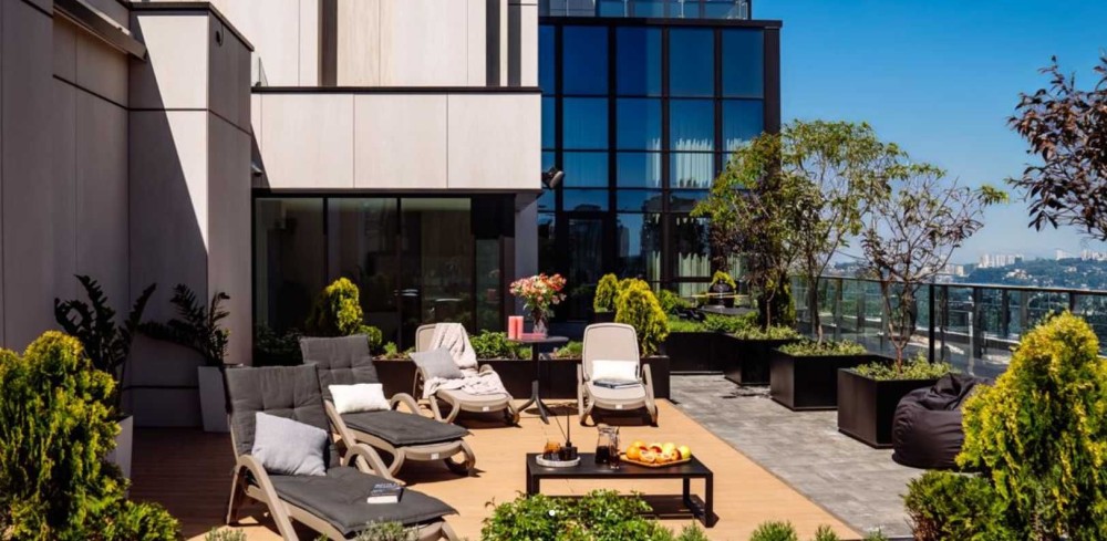 Територія комплексу приваблює ландшафтним дизайном і продуманим зонуванням. Мешканці TRIIINITY зможуть прогулятися по паркових алеях уздовж будинків, зайнятися спортом на обладнаних workout-майданчиках або розслабитися в озеленених зонах для відпочинку. Для дітей встановлять сучасні ігрові «містечка» з інтерактивними елементами. Наявність офісних і комерційних площ зробить життя резидентів ще більш комфортним — тут відкриють кафе, магазини, салони краси та інші корисні об'єкти інфраструктури.