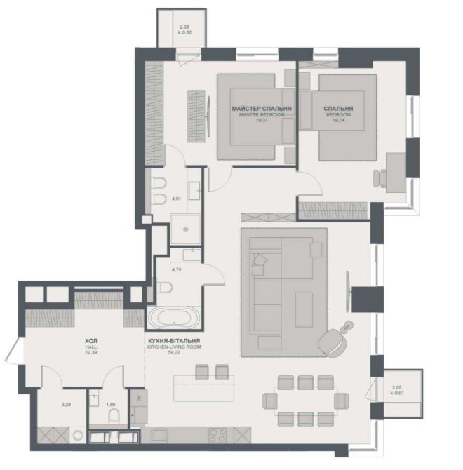 • Двухкомнатная