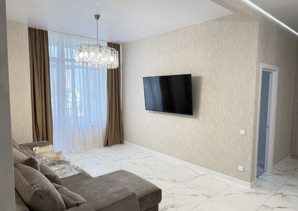 Код: 1068. Квартира с видом на море, ул. Каманина, 16А/5, Ж/К «Сорок четвертая Жемчужина», 16/24 эт. дома, общая площадь 50 кв. м. Авторский ремонт, необходимая мебель и бытовая техника: духовой шкаф, фен, плита, варочная панель, посудомоечная машина, пылесос, утюг, электрочайник, микроволновая печь, стиральная машина, холодильник, мультимедиа (телевизор, спутниковое ТВ, Wi-Fi интернет, скоростной интернет, кабельное ТВ). Допускается проживание с животными. Аренда от 6-ти месяцев и более. Стоимость может варьироваться в зависимости от срока аренды. Перед просмотром уточните наличие и детали по VIBER, WHATSAPP или TELEGRAM, указав «КОД» из объявления. КОМИССИЯ ЗА УСЛУГИ РИЭЛТОРА - 50% от месячной аренды (разовая оплата при оформлении договора).