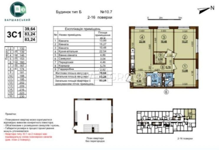 Пропонується до продажу 3-кімнатна квартира в ЖК «Варшавський-3» Буд. 10.7 загальною площею 83.24 м.