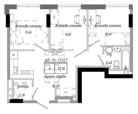 3 спальні в ARTVILLE — завжди у дефіциті. Ця планування довго не чекає.