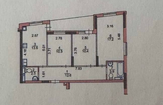 Раціональне планування - три окремі кімнати, кухня та два санвузли, великий балкон.