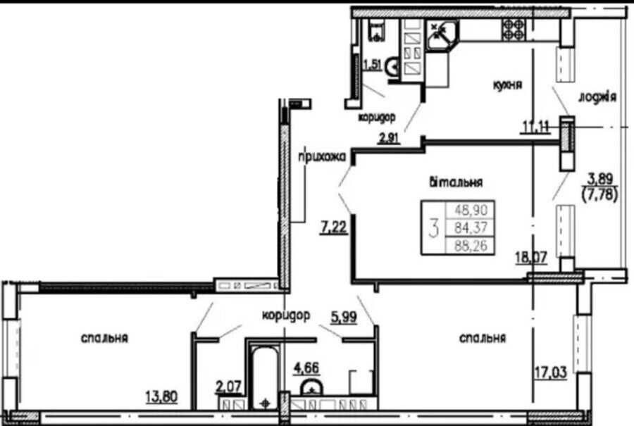 • Общая площадь 88.26 м2