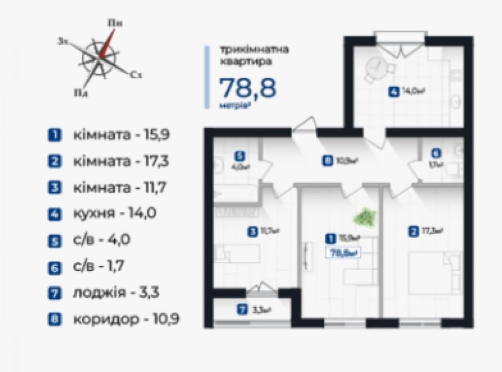 • Общая площадь 78 м2
