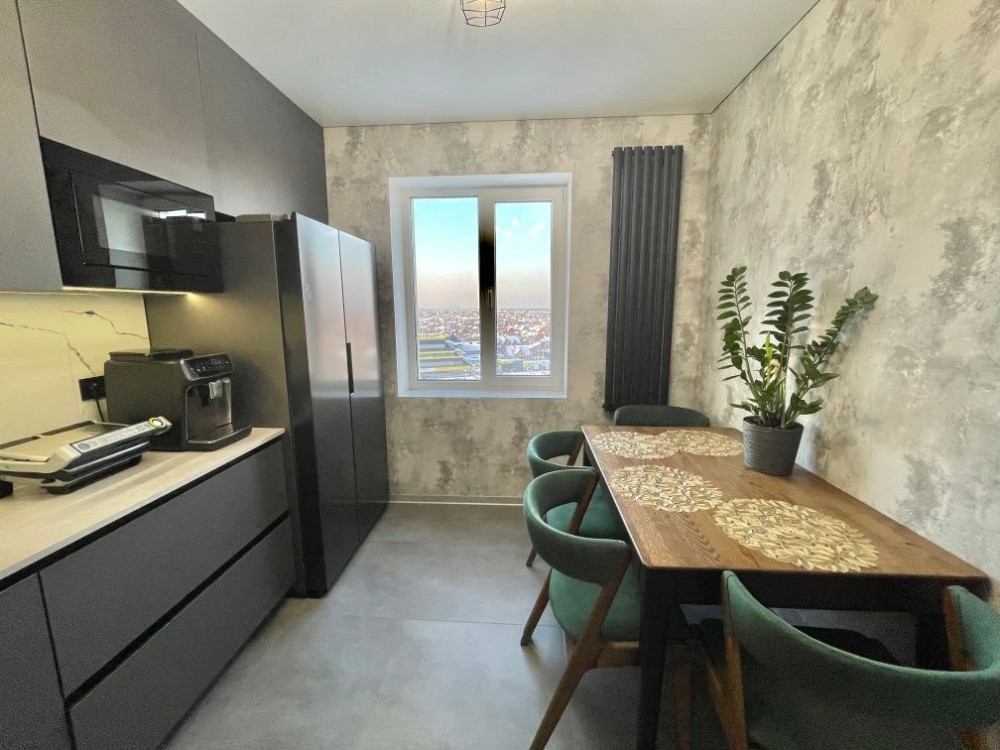 Житло з якісним ремонтом, виконаним за сучасними стандартами. Кухня виготовлена на замовлення з використанням високоякісної фурнітури (система дотягування Blum Clip-top Blumotion, MULLERBox). Техніка від провідного бренду ELECTROLUX: